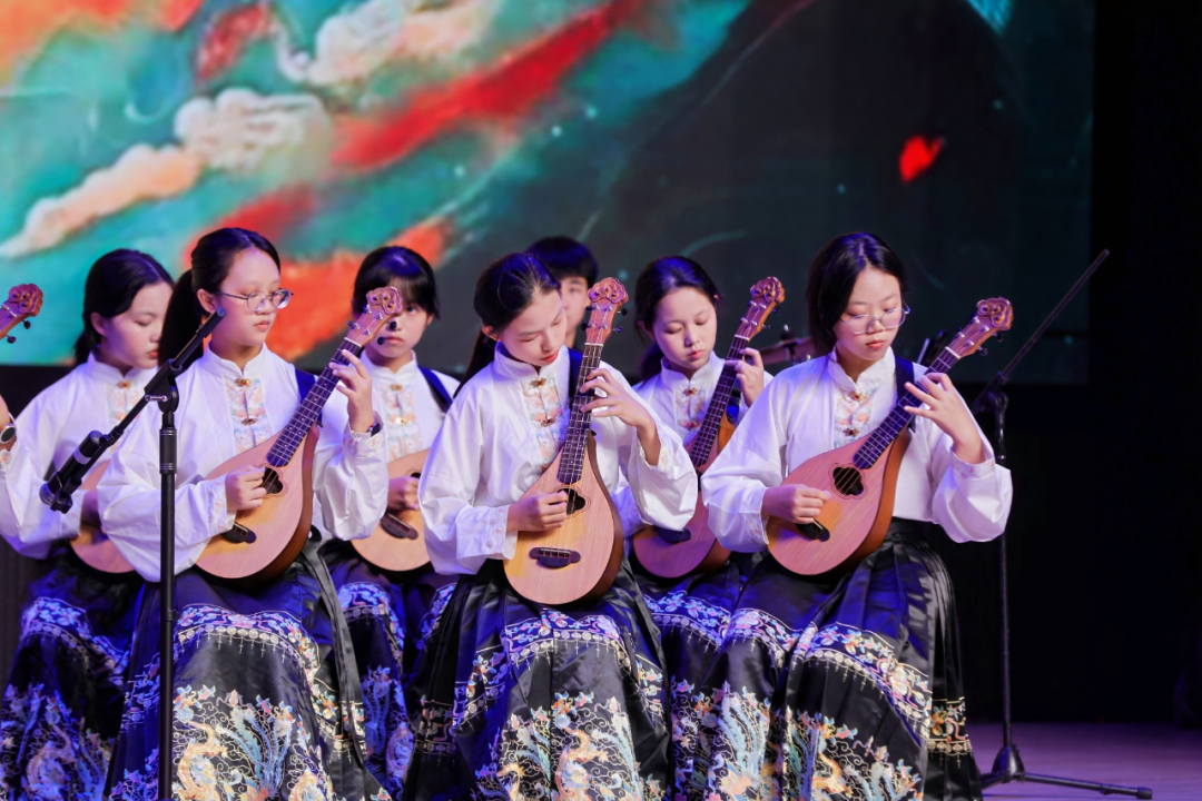 活动发轫,二中天元学校的小艺术家们以一曲民乐重奏揭开 “六一”文艺汇演的序幕。飘荡琴音如潺潺溪流流淌而出,指尖下满是古韵悠长;激越饱读点似阵阵惊雷摄东谈主心神,节拍中满是旺盛力量。二者交汇,蓦然烽火全场氛围!